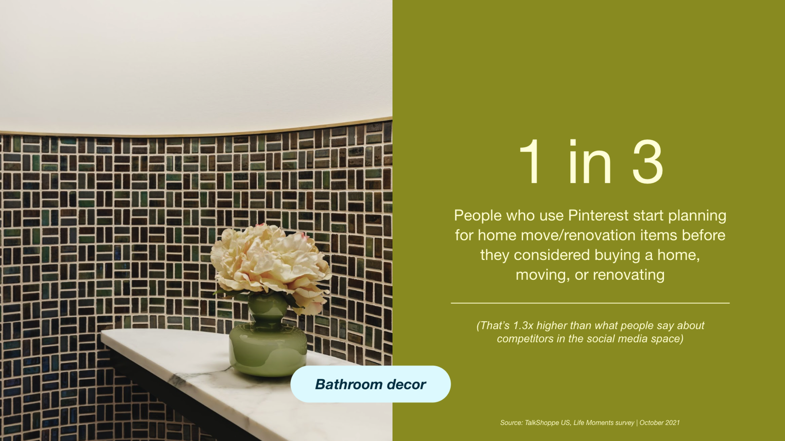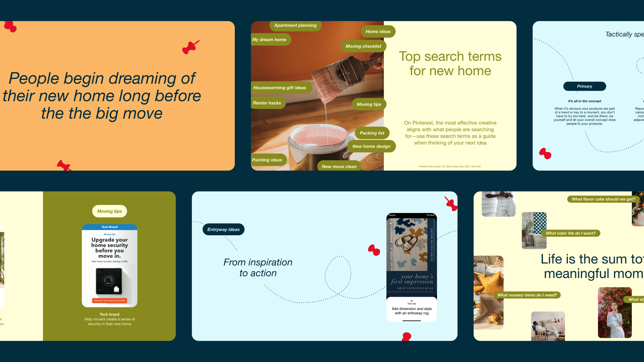 To give enterprise sales teams a clear picture of Pinterest’s home audience, we analyzed user search and engagement behaviors—highlighting trends in home decor, renovation, home buying and lifestyle inspiration. The report translates this data into actionable insights that make opportunity areas tangible and easy for advertisers to act on.