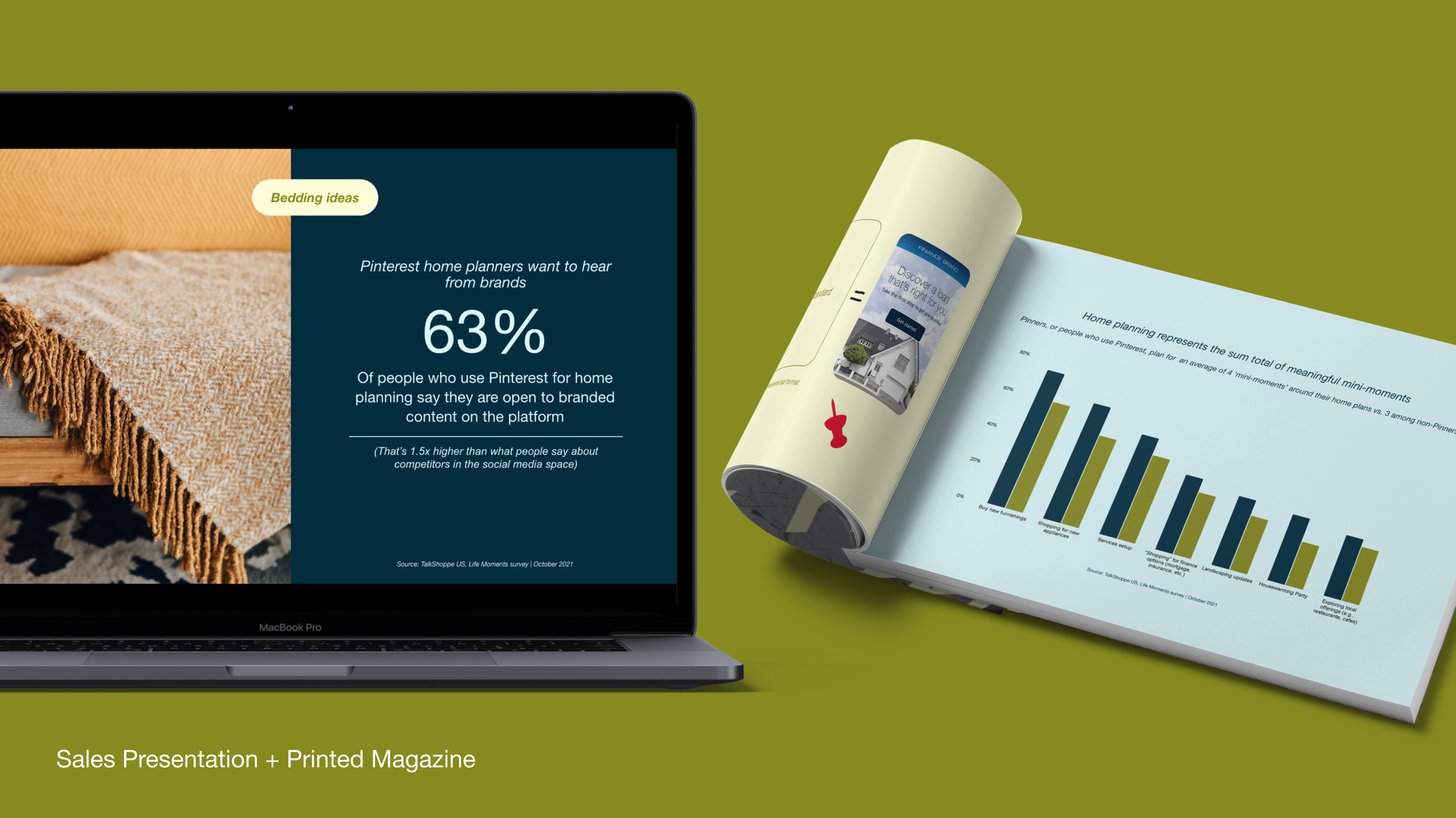 We designed and developed the Home Insights Report for Pinterest—providing enterprise sales teams with digital and print materials that showcase opportunities in the home category. The report combines data-driven insights, strategic guidance and engaging design to help brands understand how to reach Pinterest’s home-focused audiences.